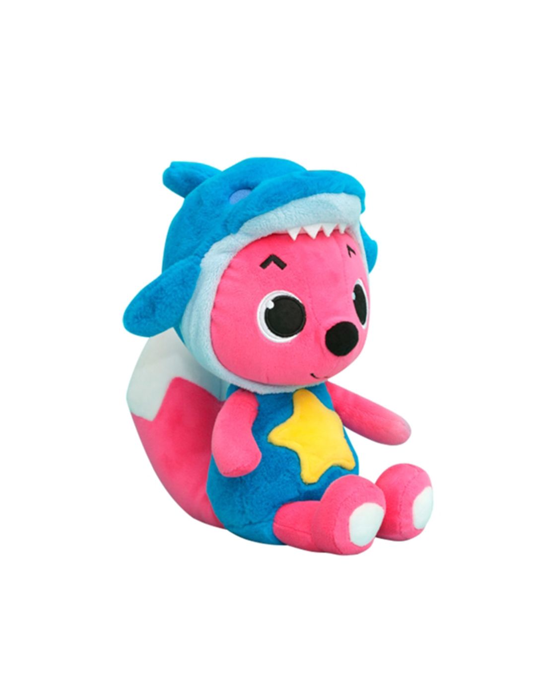 Peluche de Pinkfong com capuz de tubarão.