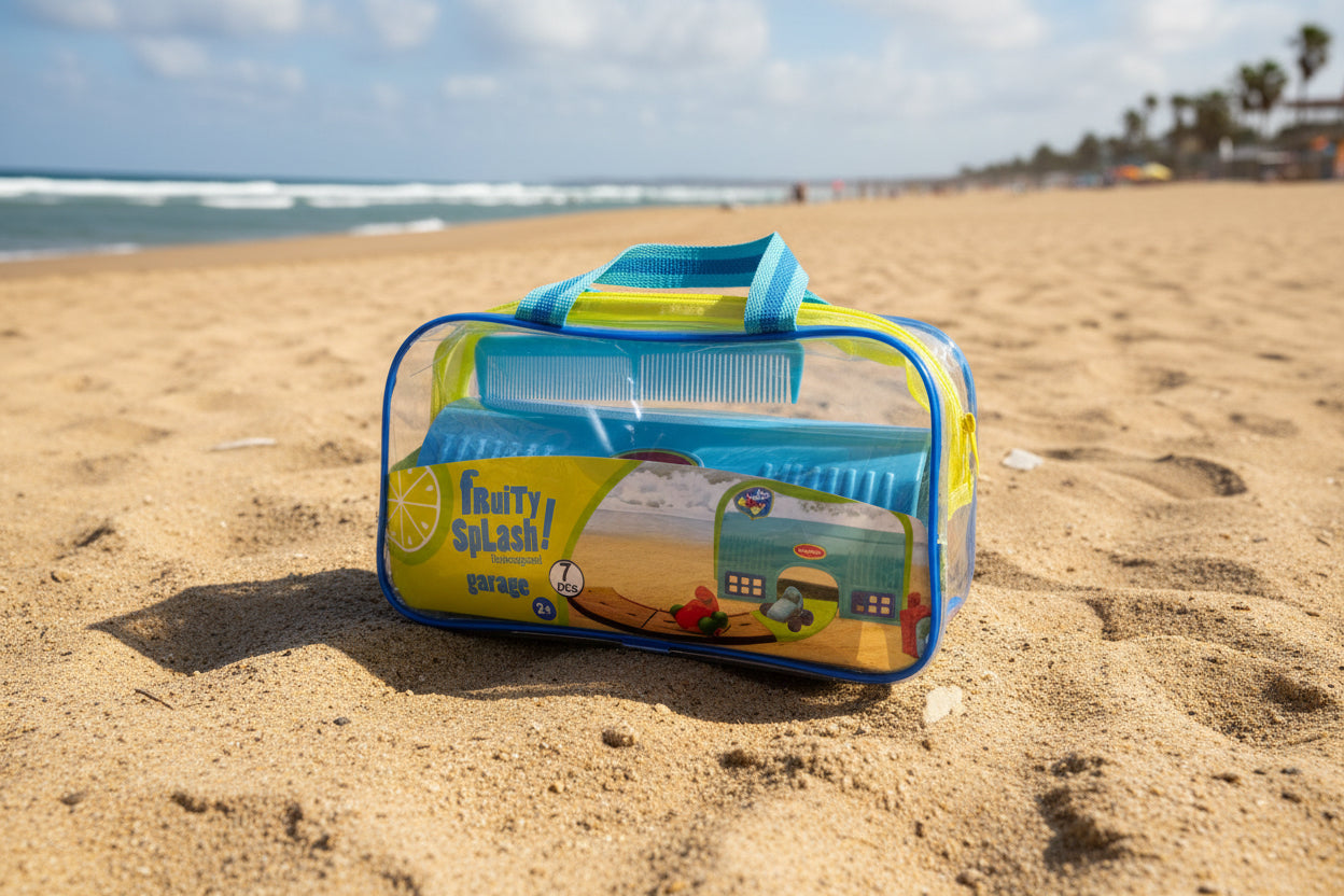 Conjunto de forminhas de praia de garagem e carros para brincar na areia.