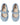 São sapatos com couro por fora e por dentro, exterior com acabamento em tecido e sola sintética/borracha.