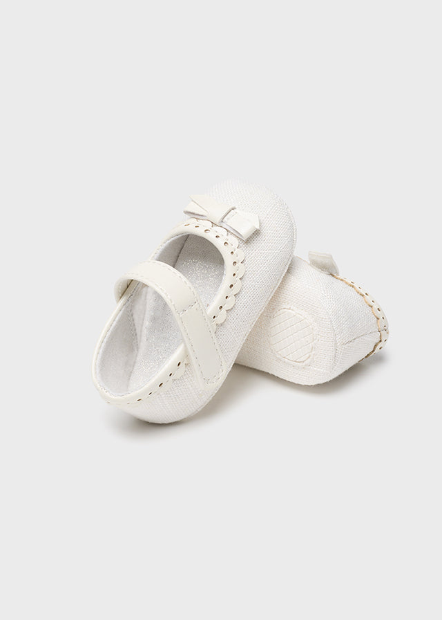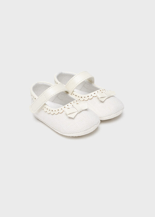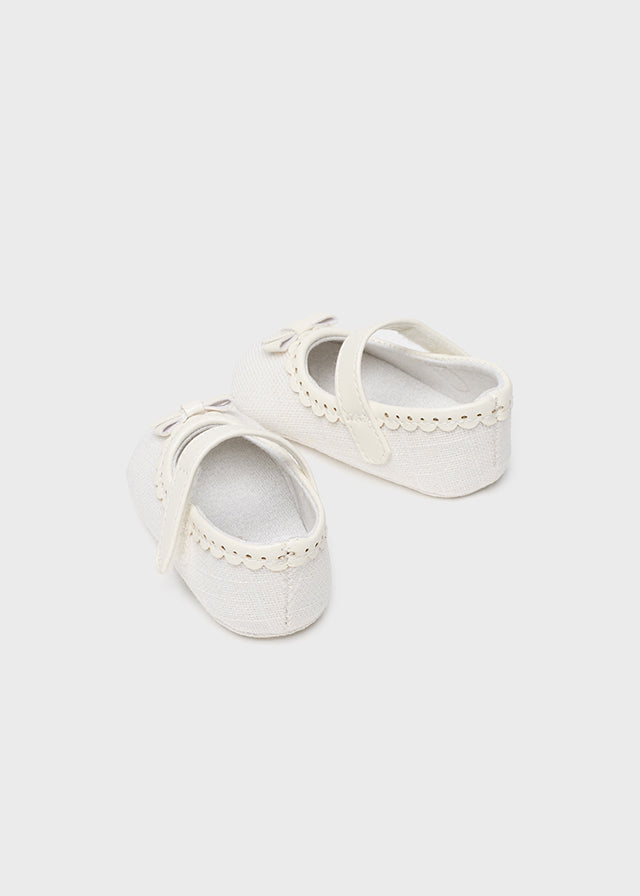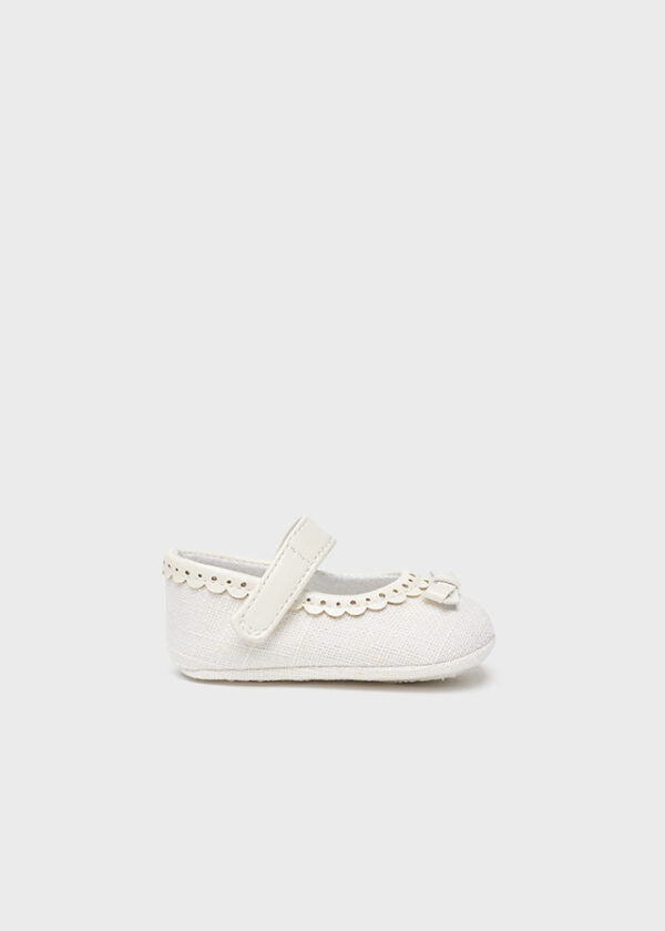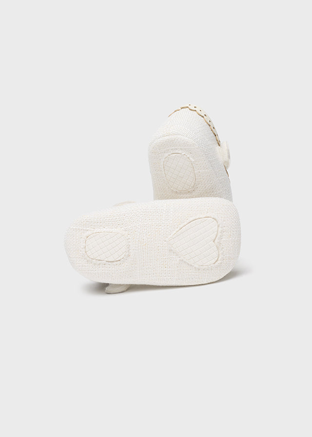 Sandália para recém nascido, estilo clássico e intemporal para os estilos mais elegantes. Todo em linho. Forro interior e palmilha de algodão respirável. Aperta com faixa de velcro ajustável que garante um suporte perfeito do pé.