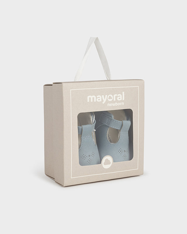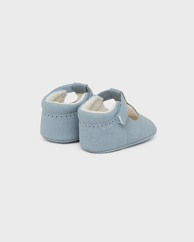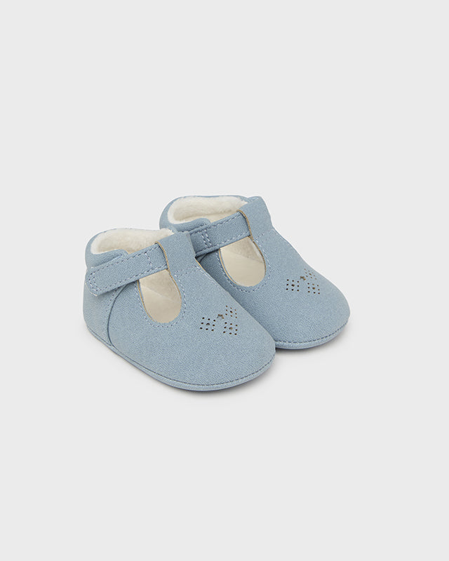 Sapato para recém nascido, estilo clássico e intemporal para os estilos mais elegantes. Forro interior com pêlo. Aperta com faixa de velcro ajustável que garante um suporte perfeito do pé.