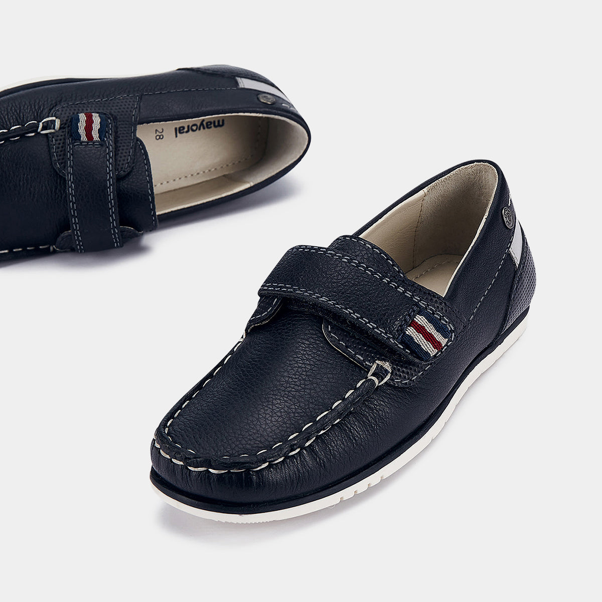 Sapato de vela para criança, estilo clássico e intemporal para os estilos mais elegantes. Forro interior e palmilha de algodão respirável. Aperta com faixa de velcro ajustável que garante um suporte perfeito do pé.