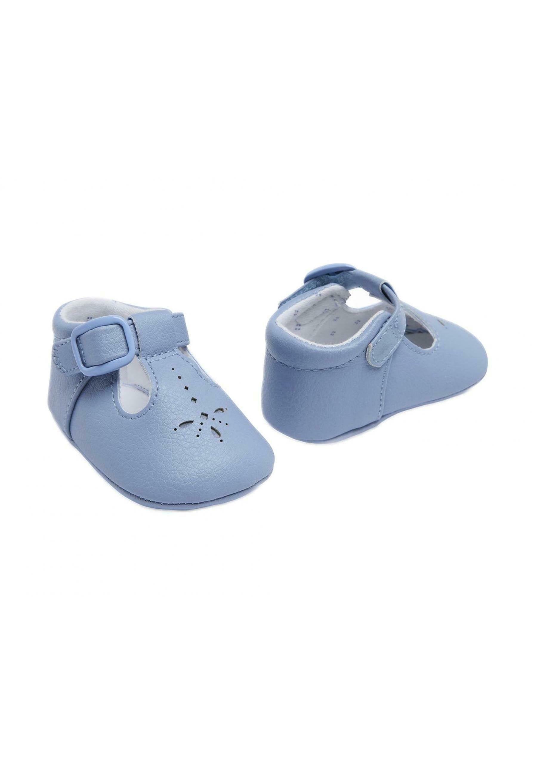 Sapato para recém nascido, estilo clássico e intemporal para os estilos mais elegantes. Todo em tecido. Forro interior e palmilha de algodão respirável. Aperta com faixa de velcro ajustável que garante um suporte perfeito do pé.