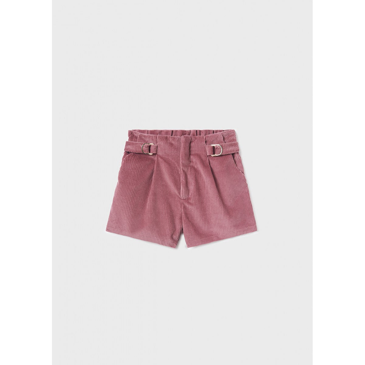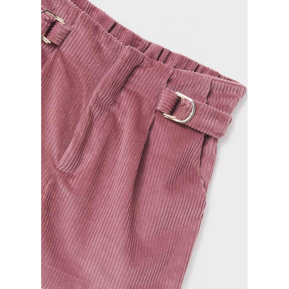 Calções de bombazina Mayoral. Calções para menina com pormenor metálico na cintura.