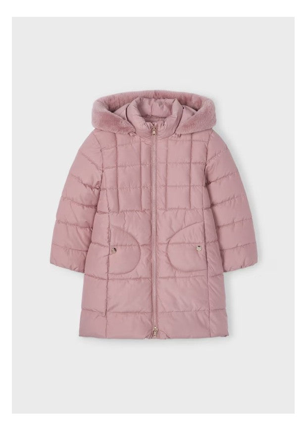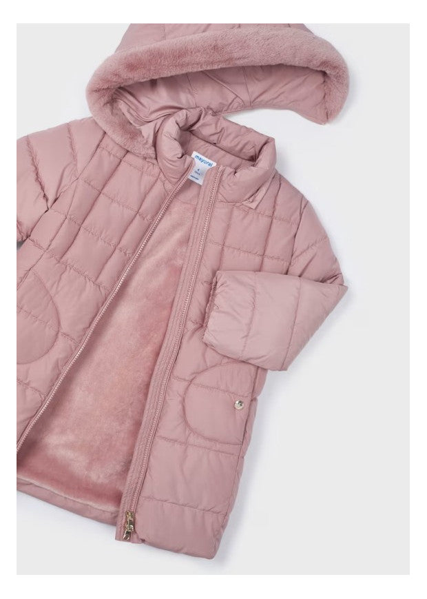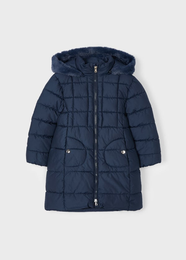Kispo com capuz removível através de fecho original Mayoral. Capuz com borda em pêlo