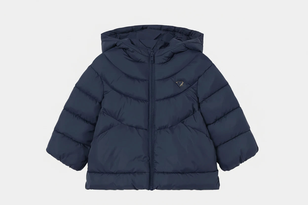 Manga comprida com punhos elásticos. Aperta na frente com fecho de correr.