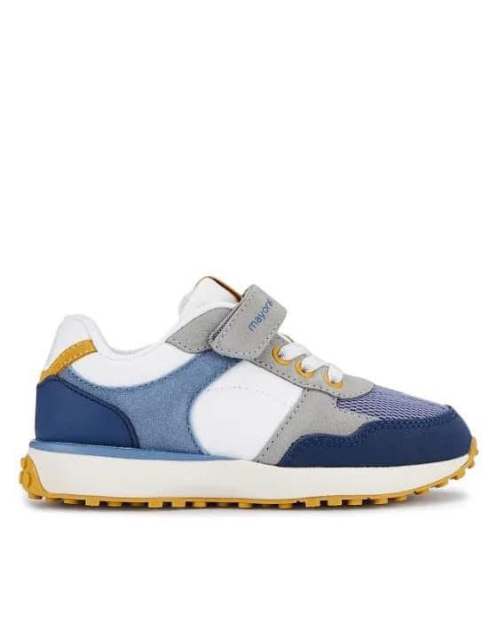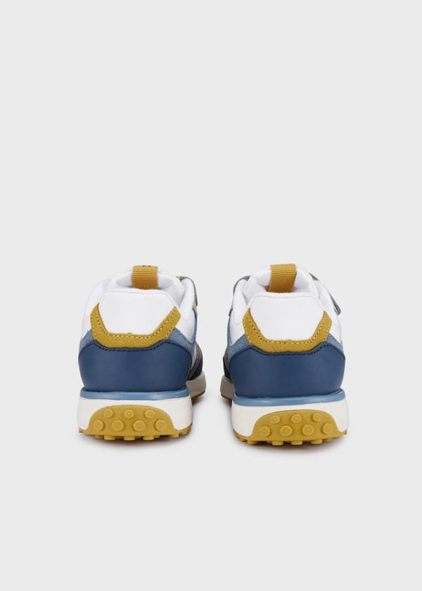 Sapatilhas (ténis) coleção prima era verão da Mayoral. Modelo Running em tons azuis, branco e amarelo