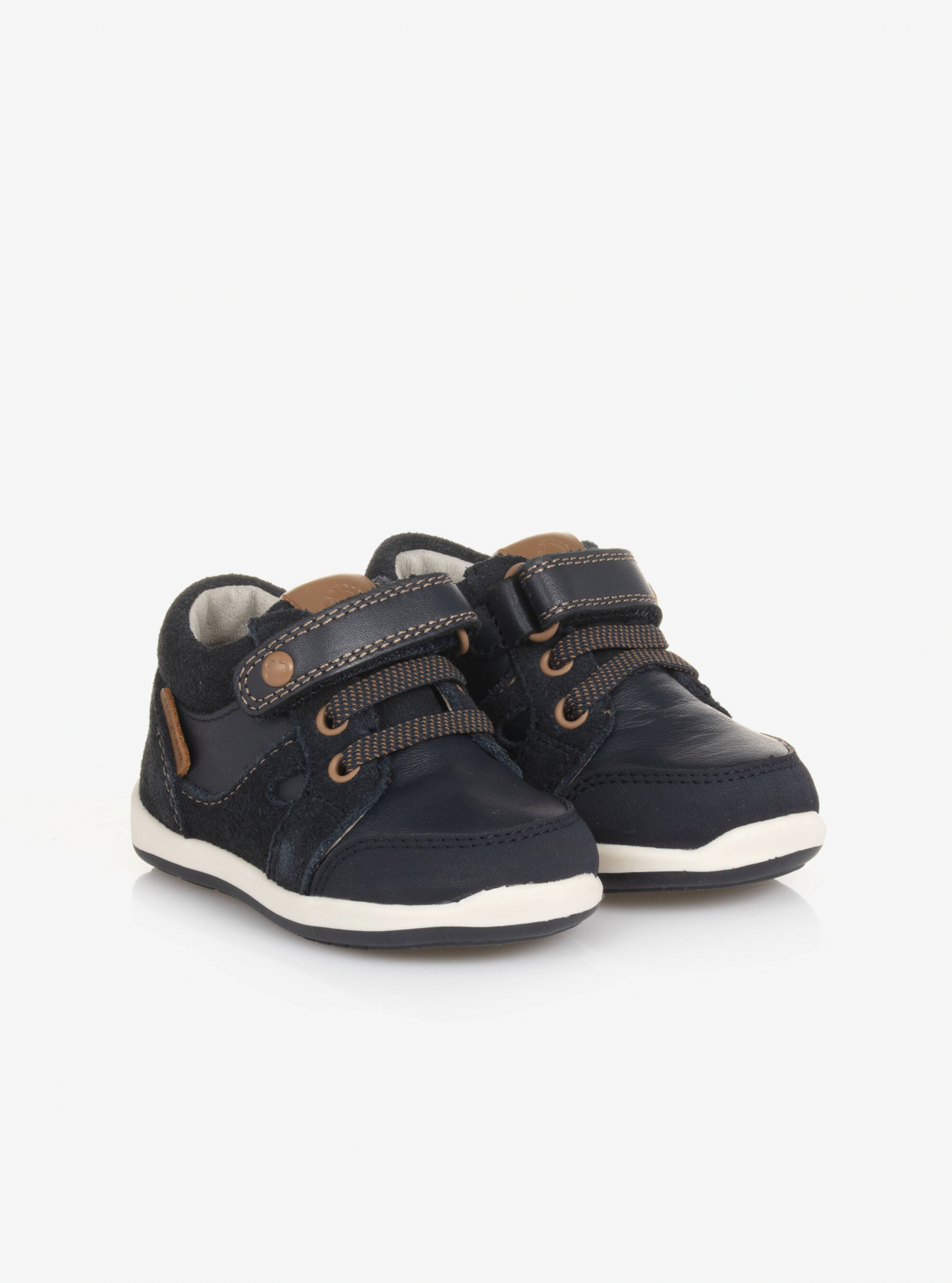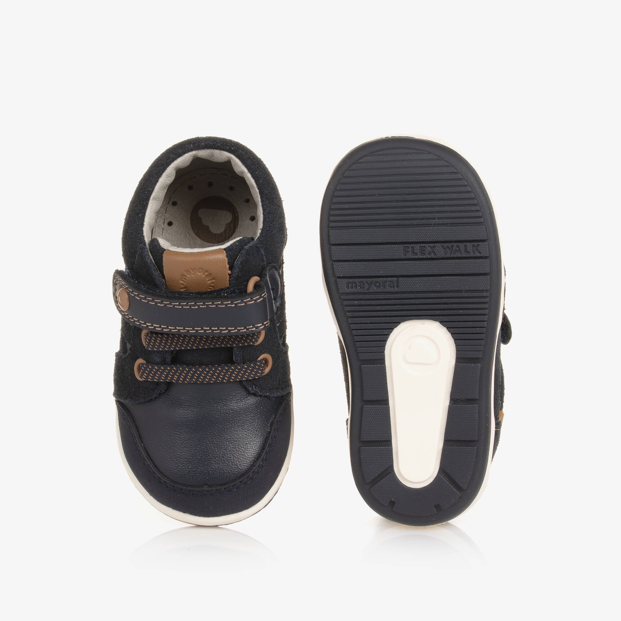 Os primeiros sapatos de couro azul-marinho para meninos da Mayoral oferecem a combinação perfeita de estilo e conforto. Confeccionados em couro macio com detalhes em camurça, possuem forro em couro suave e palmilhas removíveis com tratamento antibacteriano para maior higiene. Os cordões elásticos e a tira de velcro facilitam o calçar, enquanto a sola de borracha antiderrapante proporciona estabilidade. Ideais para os pequenos aventureiros, esses sapatos contam com calcanhar e biqueira reforçados. Quantidades limitadas, não perca!