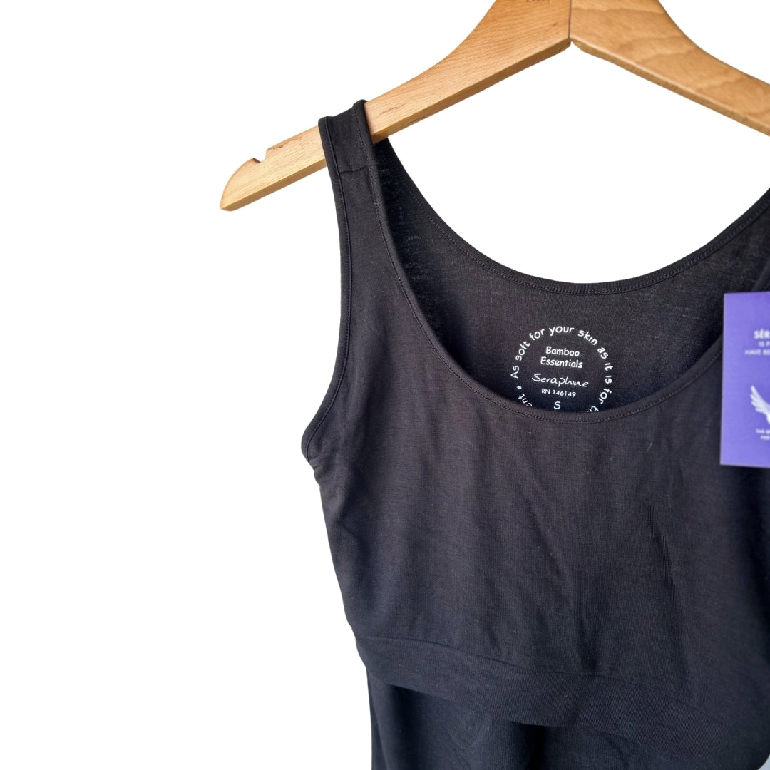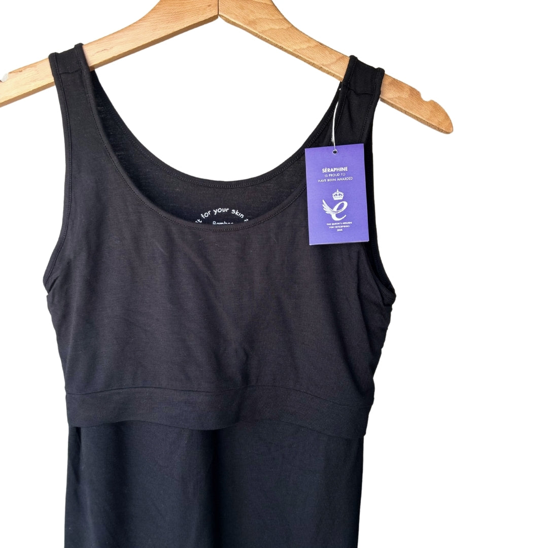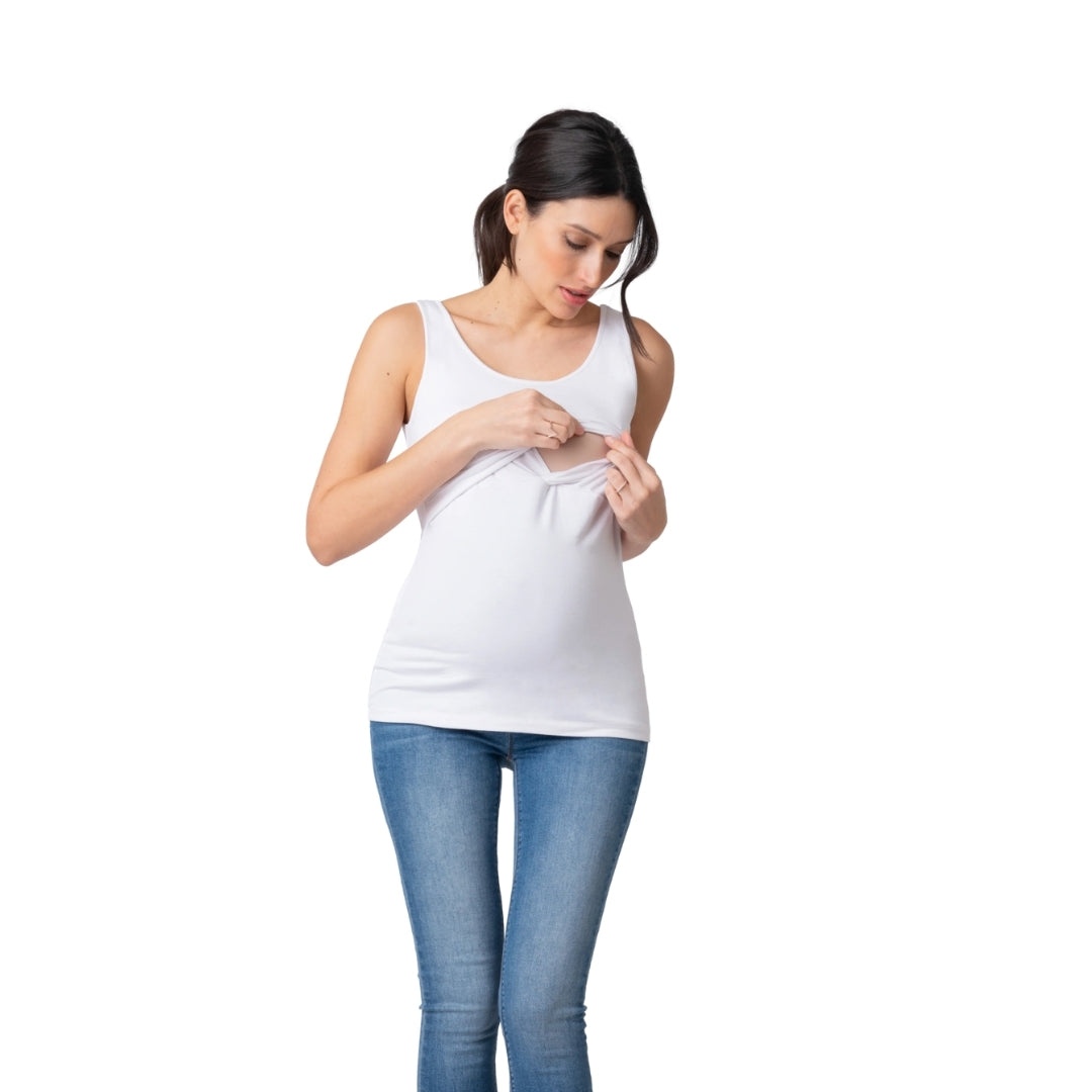 As camisolas sem mangas LAINA da Seraphine foram especialmente concebidas para proporcionar o máximo conforto durante a gravidez e o período de amamentação. Confecionadas com um tecido respirável e ultramacio, estas peças destacam-se pelo seu corte redondo e alongado, que se adapta harmoniosamente à silhueta feminina em transformação. Além disso, incluem uma prática abertura na zona do peito, permitindo um acesso discreto e facilitado à amamentação.