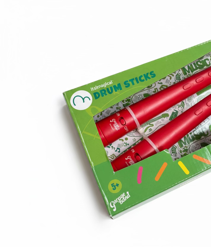 Imaginarium Drums Sticks Garageband; Baquetas eletrônicas para jogar no ar, com botões para luzes e efeitos sonoros.